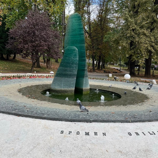 Great Park - Monument dedicated to children killed in the period from 1992-1995, Sculpture Nermin showing Father Rama calling his son, Nermin to surrender, hoping that Serbian soldiers will not hurt them, and scrolls with names of all children killed during the period from 1992-1995.